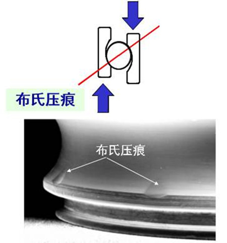 但,如果不是這樣,而是讓內(nèi)外圈相對受力了呢?那就會如下面這樣的圖示,產(chǎn)生了布氏壓痕。