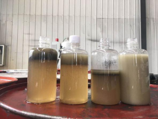 由于使用過(guò)程中處理不當(dāng),客戶送過(guò)來(lái)的油品經(jīng)過(guò)取樣后,發(fā)現(xiàn)一些桶中含水分比較多,一些桶中乳化已經(jīng)比較嚴(yán)重。